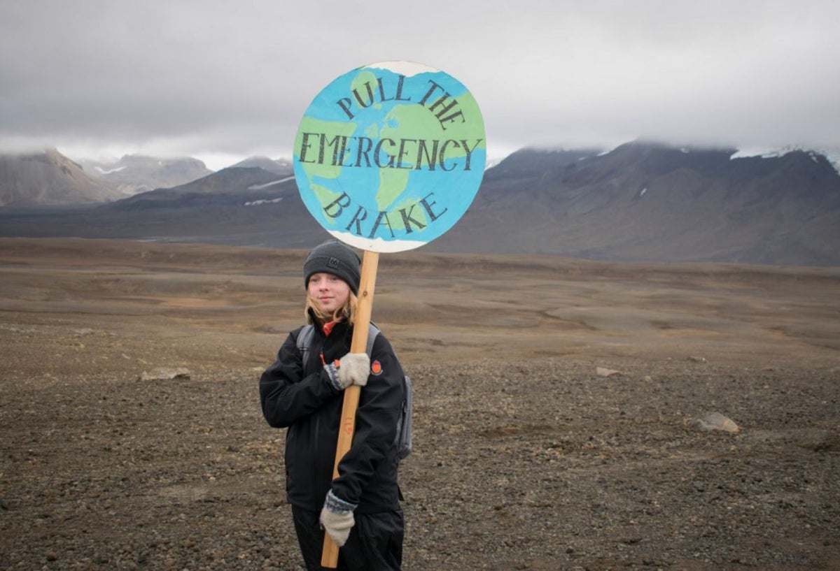 También lleva la mención "415 ppm CO2", en referencia al nivel récord de concentración de partes por millón de dióxido de carbono registrado en la atmósfera en mayo pasado.