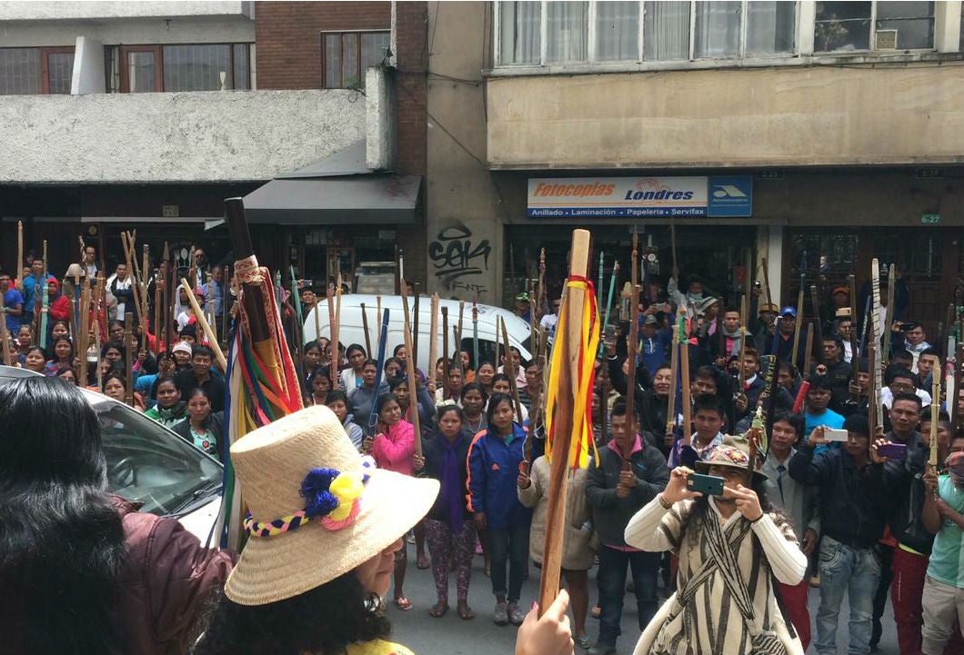 "Los pueblos indígenas Embera, Wounaan y Zenú, de los Municipios de RioSucio y Carmen de Darién del Chocó, en Minga por la Vida y la dignidad, movilizados y caminando la palabra en la ciudad de Bogotá, continua de manera indefinida, y se unen a la movilización estudiantil este jueves en todo el país", anunció este miércoles la Organización Nacional Indígena de Colombia (ONIC).