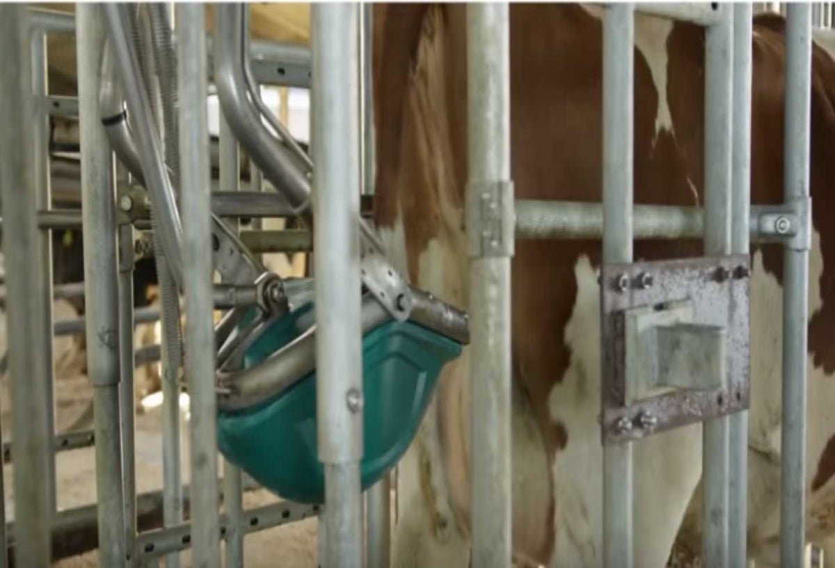 Cuando se le ofrece a las vacas el alimento granulado y termina de comer, un robot estimula un nervio situado bajo la ubre, lo que le da deseos de orinar.