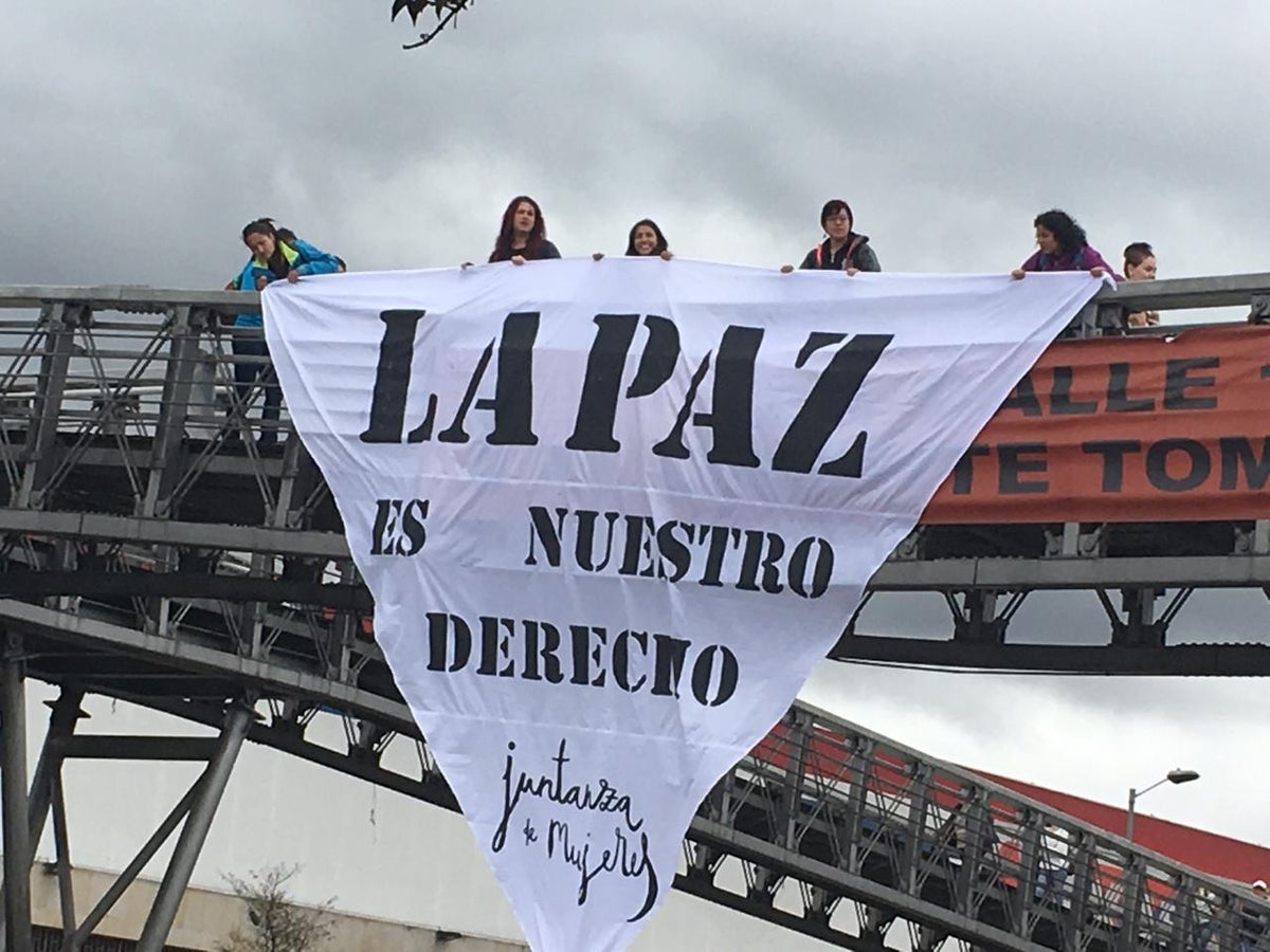 Centenares de mujeres que hacen parte de 'Juntanza de Paz', compuesta por distintas organizaciones sociales, lanzaron en la mañana de este lunes en Bogotá y en diferentes ciudades del país pañuelos blancos y pidieron al gobierno nacional una salida política y pacífica al conflicto armado en el país.