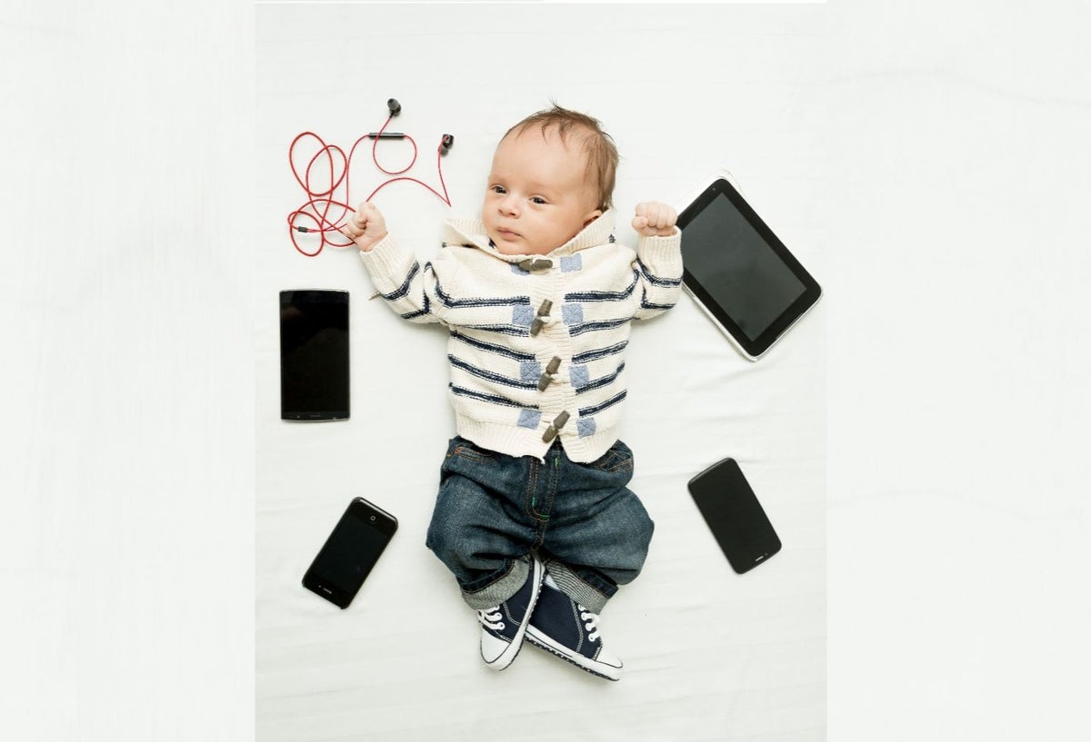 Bebé con dispositivos electrónicos Crédito: ingimage