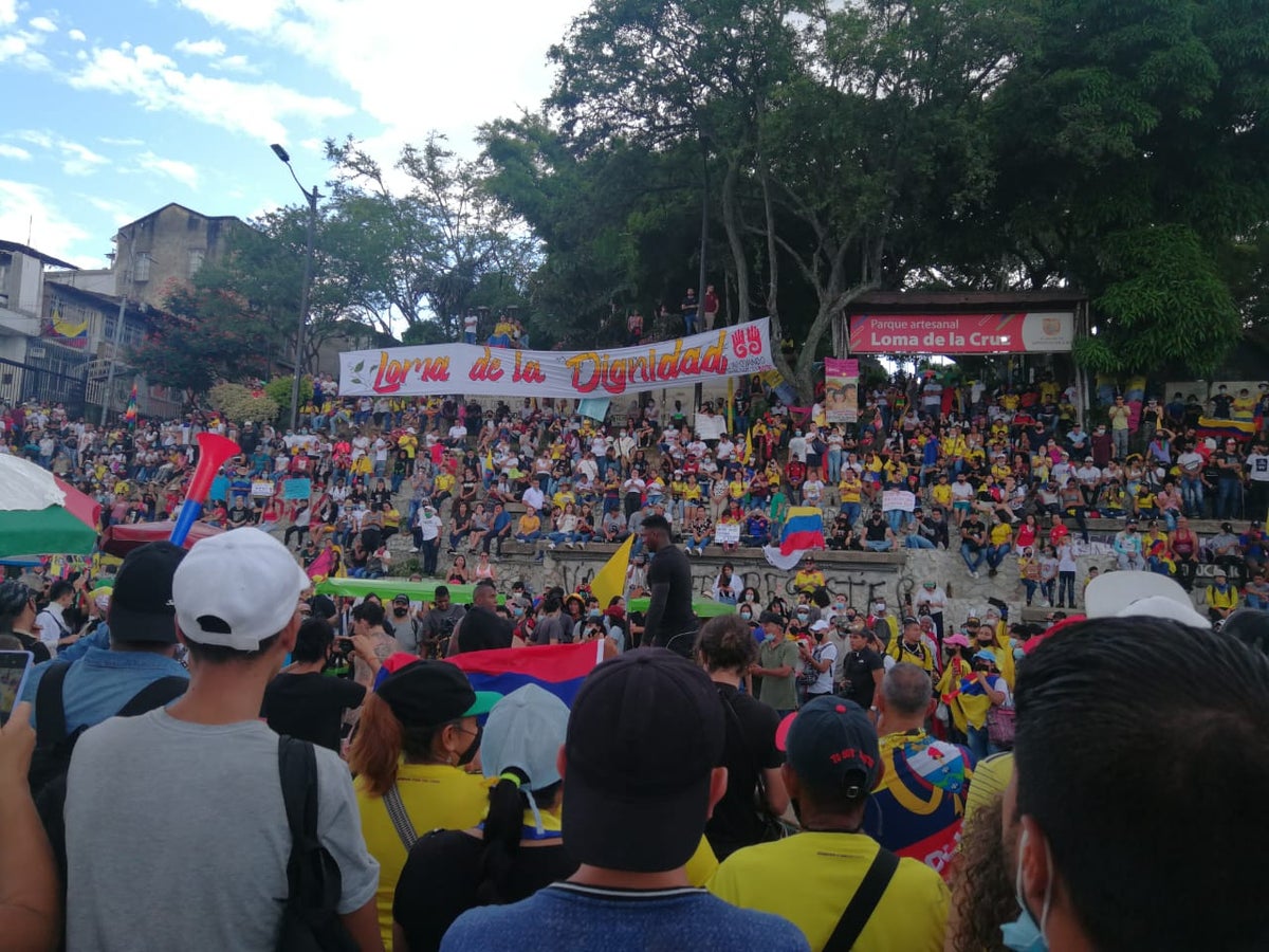 Jóvenes denunciaron que durante el desarrollo de una manifestación en la Loma de la Cruz, en el centro de Cali, se registraron una serie de disparos en contra de la concentración.