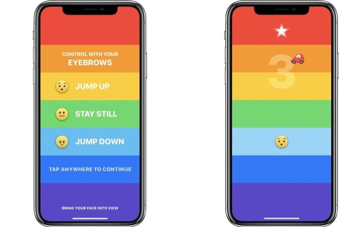 El movimiento del emoticón se controla con las cejas del usuario. Cuando la persona frunce el ceño el ‘emoji’ se desplaza hacia abajo, mientras que si sube las cejas asciende.