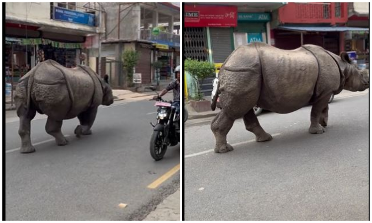 Recientemente, se ha difundido en redes sociales el video de un imponente rinoceronte caminando por una concurrida calle, lo cual ha llamado la atención de los internautas, pues nadie parece asustarse ni inmutarse por este animal.