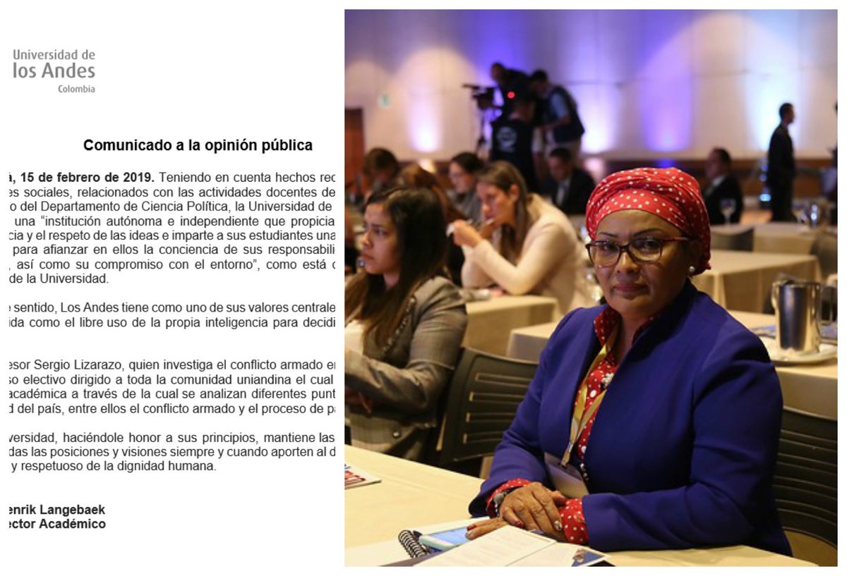 La Universidad de Los Andes manifestó su respaldo al profesor Sergio Lizarazo, del área de ciencias políticas, quien fue blanco de críticas por haber invitado a la senadora por el partido Farc Victoria Sandino a dar una charla en ese claustro.