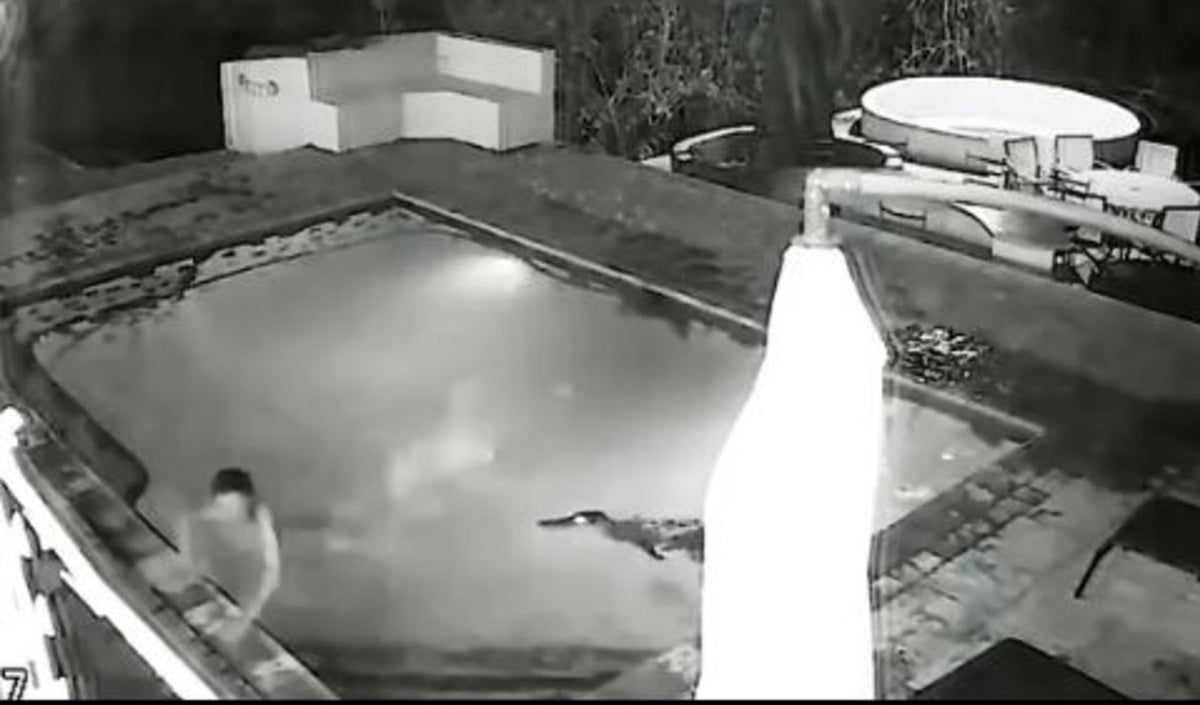 En el video se ve a una pareja hablando en la piscina, mientras disfrutan de un baño que jamás se imaginaron les habría podido costar la vida. En cuestión de segundos, un cocodrilo de metro y medio se acerca al borde sin que ellos se percaten de su presencia hasta que el animal salta al agua.