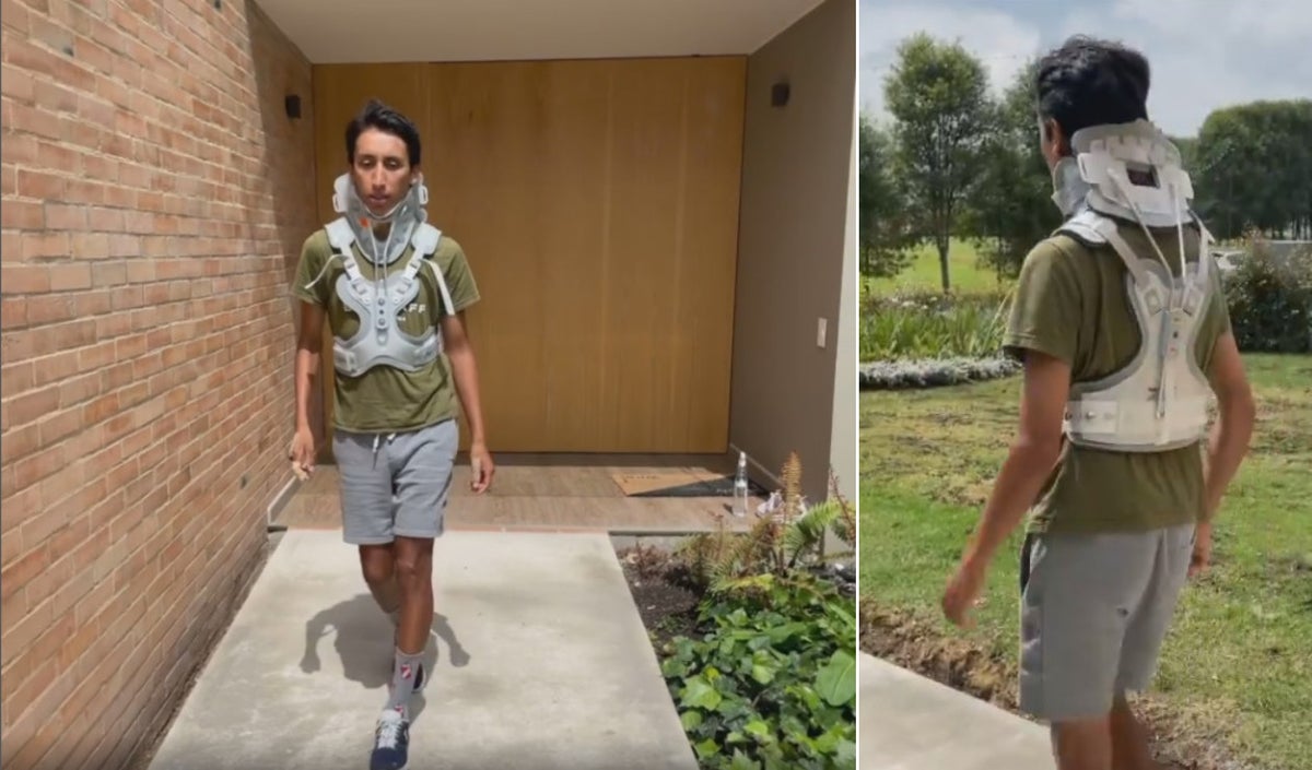 Egan Bernal (INEOS) volvió a caminar, dos semanas después del aparatoso accidente que sufrió y que le valió chocar a más de 60 kilómetros contra un bus en inmediaciones del municipio Gachancipá.