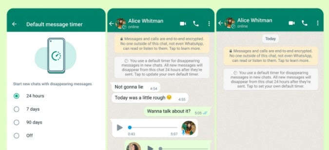 Ahora, la app tiene nuevas funciones para esta alternativa y pensó en aquellos usuarios que desean medir cuánto tiempo debe durar un mensaje en el chat, por lo que WhatsApp anunció más opciones para controlar estos mensajes.